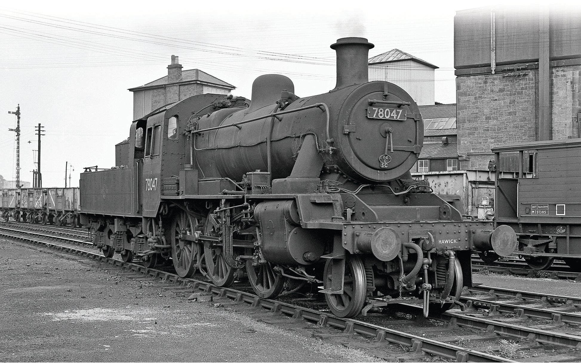 78047 entered traffic at Hawick Shed on 25 October 1955 where the locomotive spent most of its lifetime working, even deputizing for failed Class 27, 40 and 45 diesels on the Edinburgh-Carlisle route post-1961.